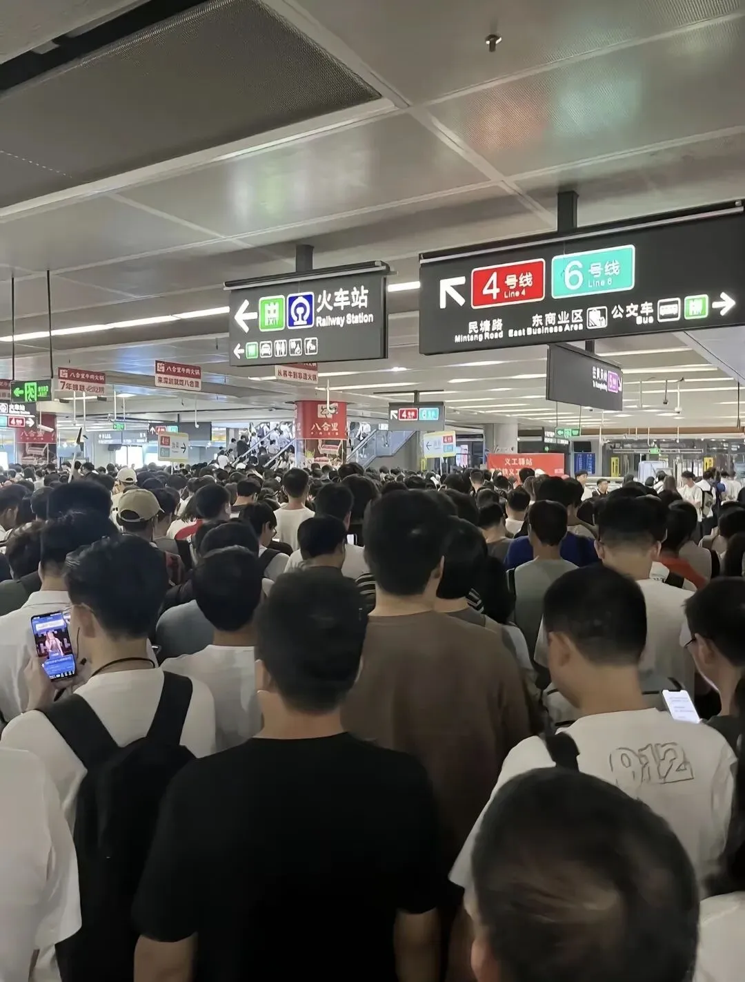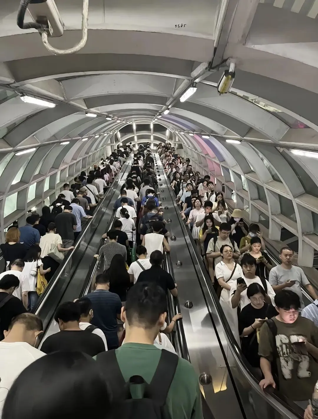 扶梯上,人们顺着人流缓缓向上,目光或放空或投向手机,连呼吸都变得小心翼翼;站台上,列车还未进站,人群已经排起长队,有人踮脚张望,有人低头刷着消息,等待的每一分钟都在消耗着最后一丝精力。