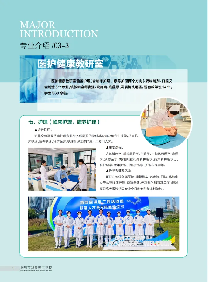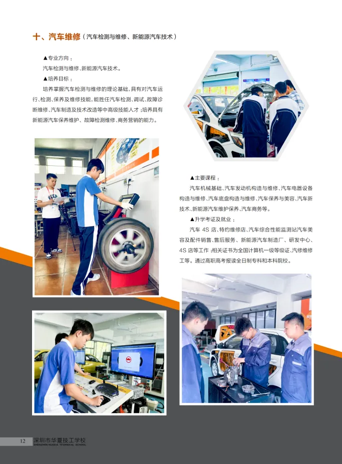 以市场为导向,学校结合坪山新区《行动规划》——把IT、生物制药、新能源、机器人、生命健康等作为战略要点,开设了新能源汽车、计算机软件开发、护理、药物制剂及旅游服务等热门专业。