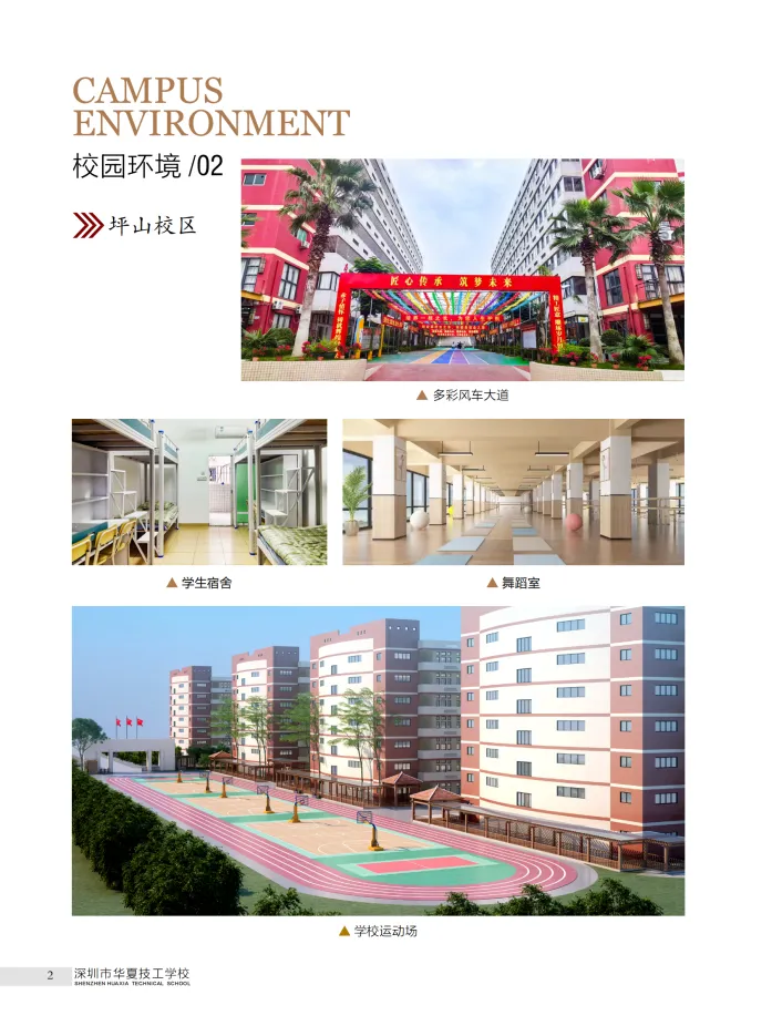 深圳市华夏技工学校是深圳市人力资源和社会保障局批准设立的全日制现代化技工学校。学校属于典型的欧式建筑,花草树木繁盛,校园占地面积35000平米,建筑面积30000平米.东靠惠州大亚湾,南连生态优美的大鹏半岛,西邻世界最大单体港--盐田港,北接商贸发达、配套齐全的龙岗中心城,深惠高速、深汕高速、深厦高铁等交通干道穿境而过,高铁捷运20分钟可达深圳北站,深圳地铁14、16号线和云轨建成后,坪山将与市中心区、香港、莞惠形成便利快捷的“半小时交通圈”。
