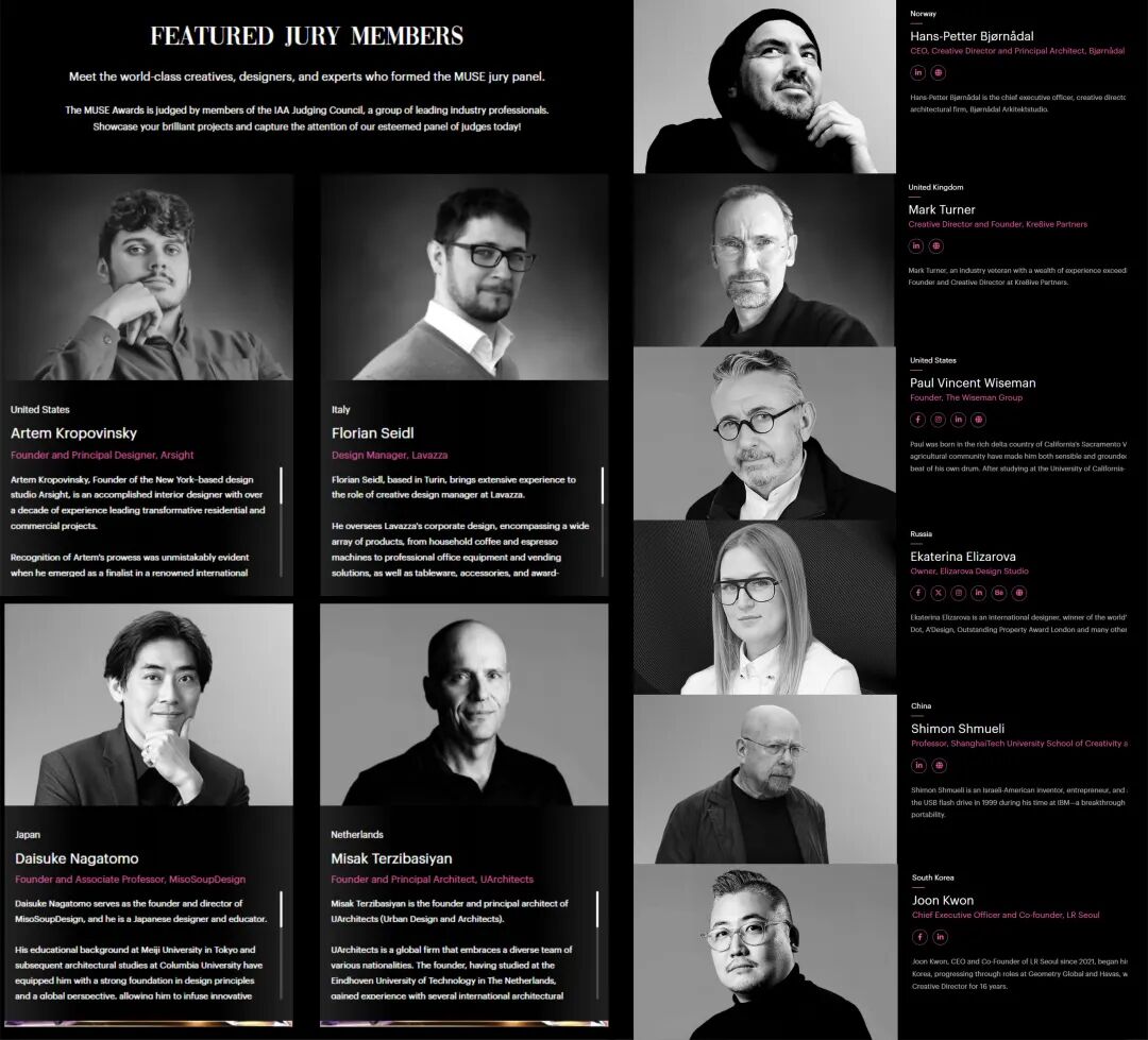 ▲2026 美国 MUSE 设计奖(MUSE Design Awards Panel)评委阵容