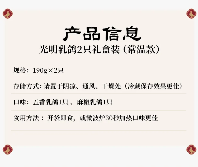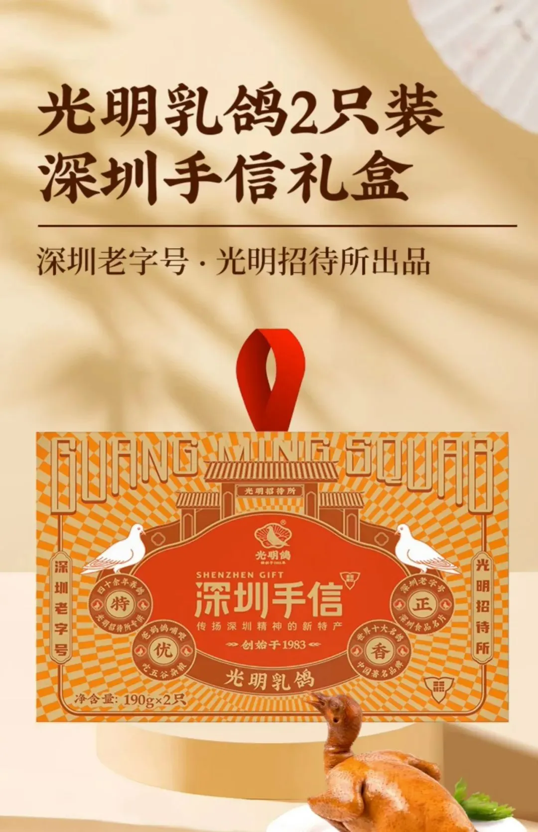 >【深圳老字号】128元享光明乳鸽手信礼盒装,光明招待所出品,世界十大名鸽!