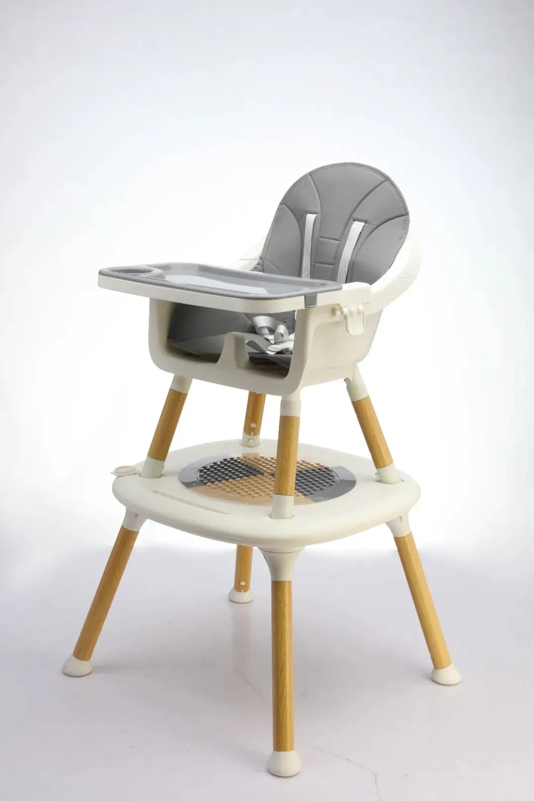 全新PP料、可坐可高低调节、PU皮坐垫,可变积木桌、写字台,双餐盘、五点安全带。