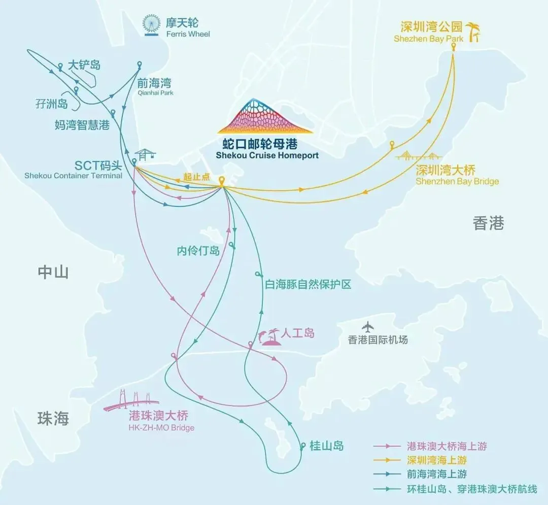 蛇口邮轮母港-SCT码头-内伶仃岛-白海豚岛(西人工岛)-牛头岛-港珠澳大桥