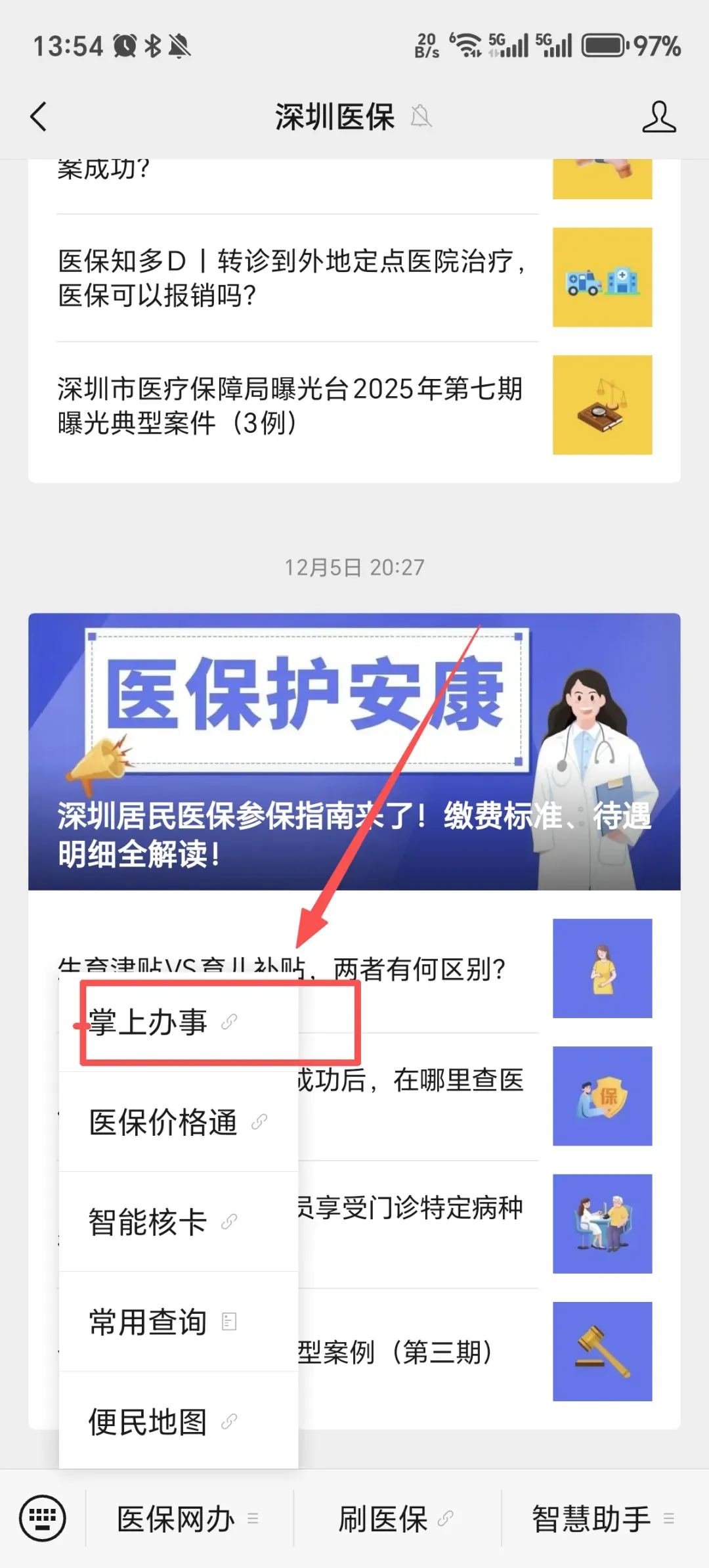 第一步:大家可以微信搜索关注“深圳医保”公众号;