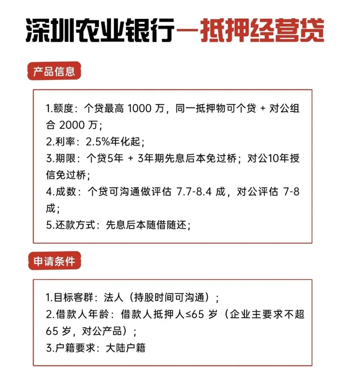 目前深圳市场国有银行经营贷利率:2.45-2.65区间,具体以客户资质来做为审核标准,折合月息为2厘-2厘2区间。国有银行政策受国家强监管,产品稳定。商业银行可能会略低,但产品不稳定,容易涨息,大部分人都会选择国有银行,利率区别并不大。而且国有银行产品相对灵活。其中随借随还为大部分人青睐。(这里需要避坑的是,很多银行一放款,无论你用不用,都是全额计息,而且所谓的随借随还很多是伪随借随还,因为每用一次,都需要重新审批,重新提供贷款用途,重新找第三方收款,反正巨麻烦,并不是真正意义随借随还。
