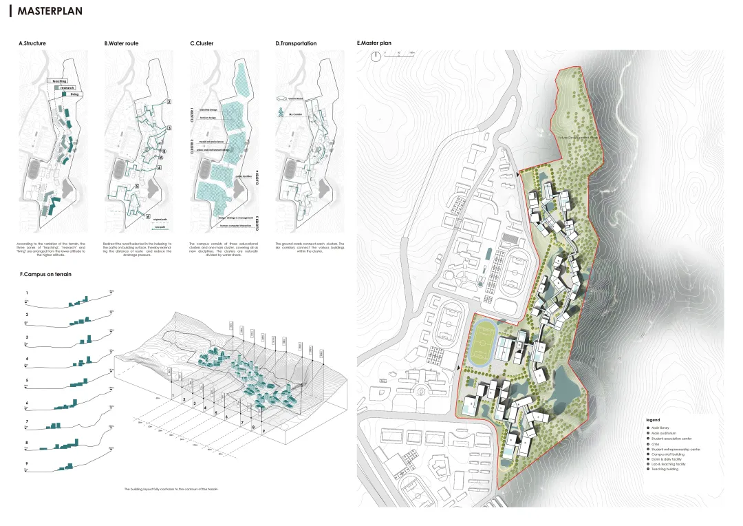 有的方案提出充分利用紧邻大学校区的三所学校资源,通过共享跑道、图书馆、剧场等公共设施,实现基础设施的高效利用,使新开发区域尽可能紧凑;有的方案探讨了“生长”的过程,将项目视为一个潜在扩张的开端,思考如何建立一个可以随时间推移而发展的系统。