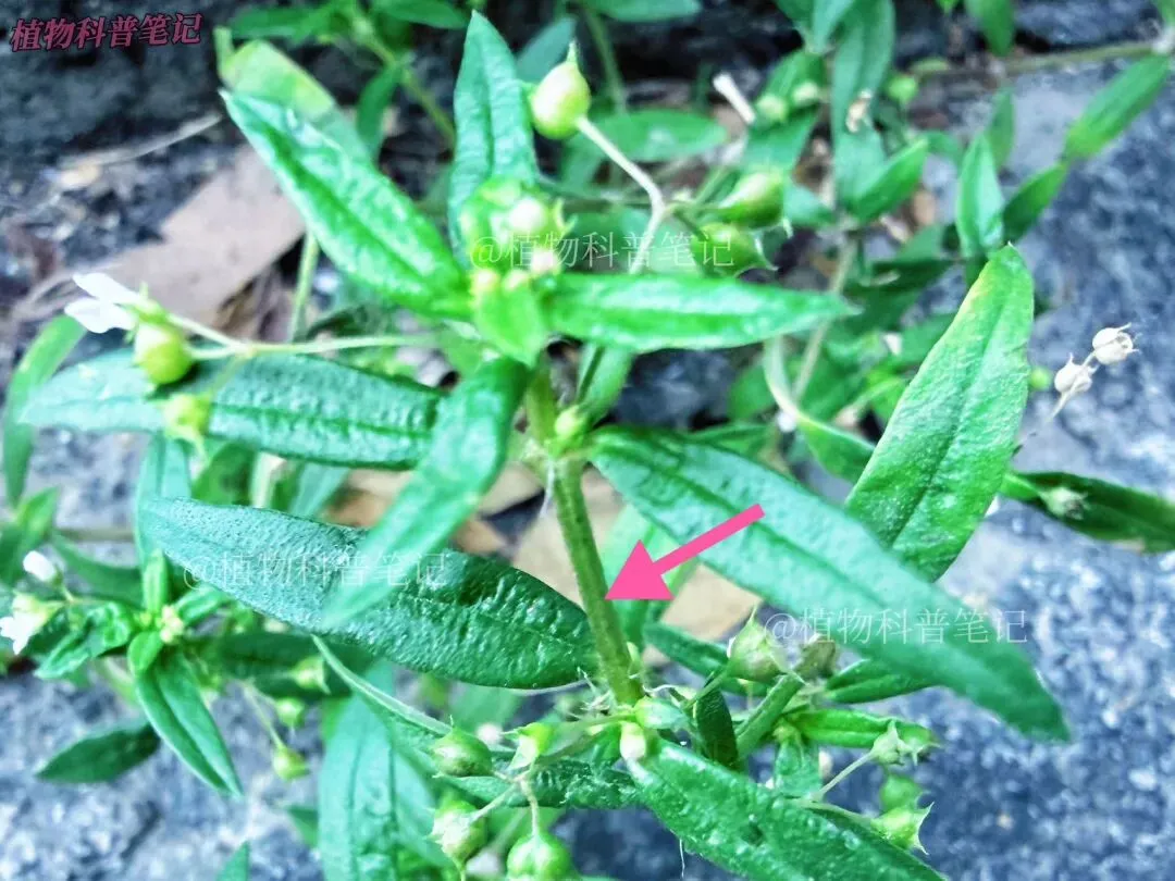 最直观的区别是白花蛇舌草花单生或成对生于叶腋,几乎无总花梗。