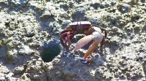 招潮蟹挥舞着大螯挖洞
