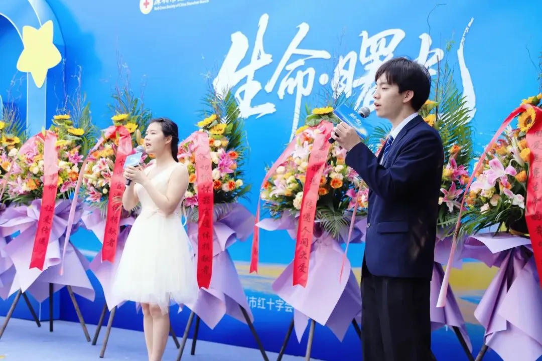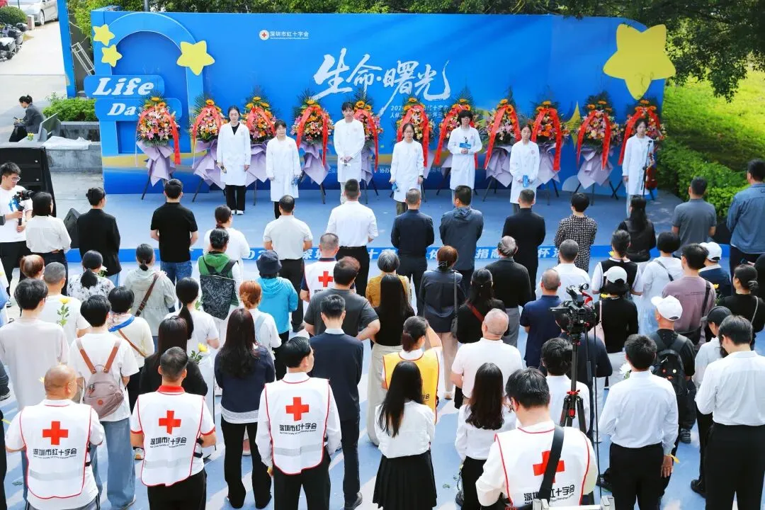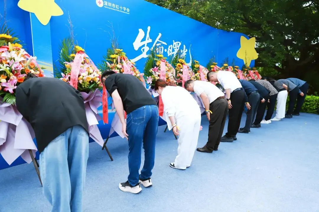 深圳市红十字会与10家单位的代表缓步上前,向捐献者们敬献花篮。每一朵鲜花都象征着对这份大爱的崇高敬意。