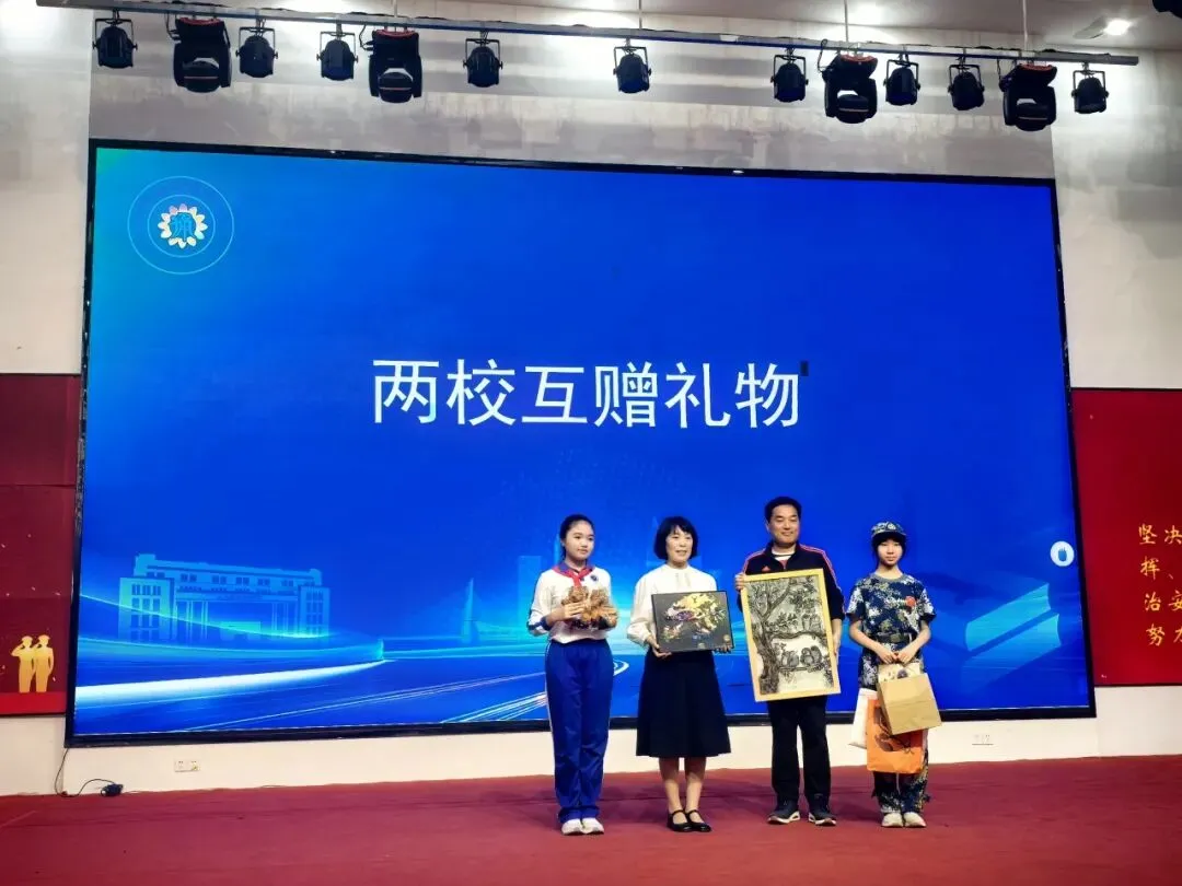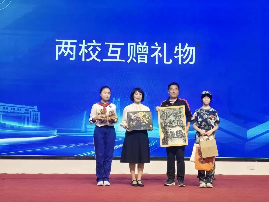 字字嘱托,皆是成长的期许。致辞环节结束后,董玉玲校长与杨作城副校长共同完成两校互赠礼物仪式。一份份满载心意的信物,联结的是两校的深厚情谊,承载的是深港同心的美好愿景。愿这份友谊如东江之水生生不息,如红色星火代代相传。