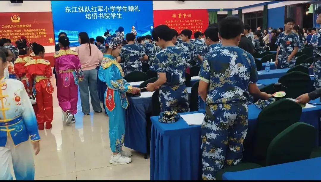文艺展演落下帷幕,最暖心的互动环节如约而至。深圳东江纵队红军小学的同学们,将一份份承载着满满心意的礼物,亲手送到了培侨书院小伙伴的手中。