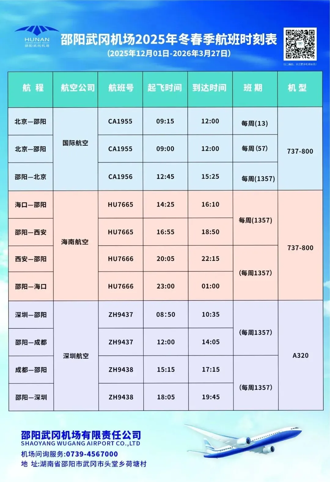如需了解最新航班信息,可拨打邵阳武冈机场官方问询电话 0739-4567000,或留意机场微信公众号发布的最新的航班调整通知,出行前一定要再确认一下。