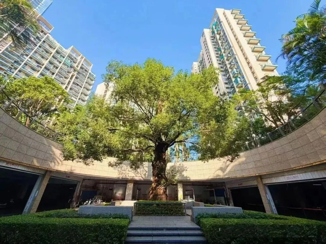 更妙的是,小区从湖南深山移植了一棵800年的古香樟,高25米,树干粗1.5米,直接种在车库里,大树穿过架空层伸出屋顶,连车库都能享受到绿化和阳光,这设计放在现在都少见。