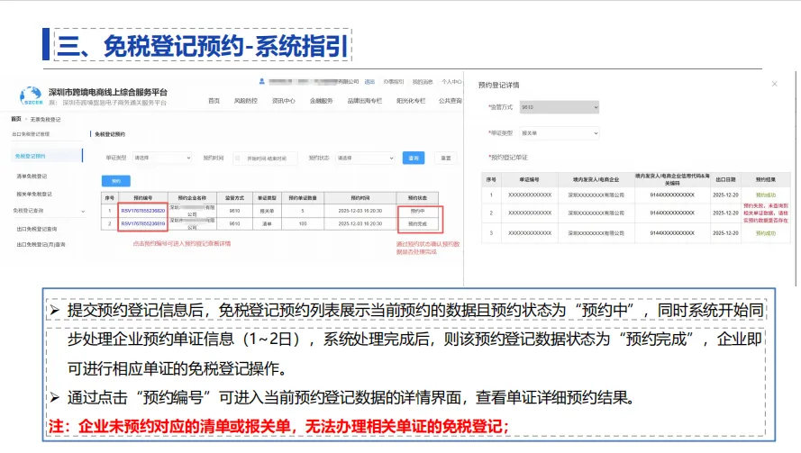 提交后,系统会自动核验数据的真实性、申报平台的合规性以及企业关联关系。如果预约失败,系统会同步提示具体原因。