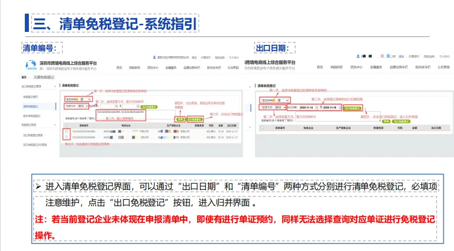 重要原则:先通关,后登记! 请务必在报关单或清单申报完成后,再进行无票免税登记操作。