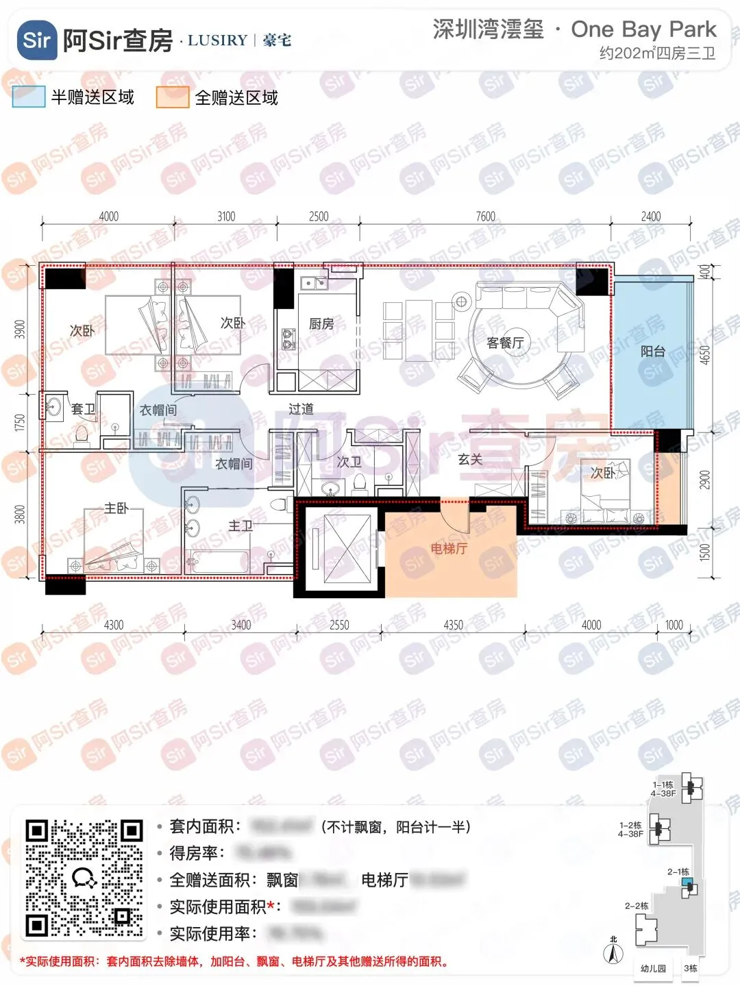 先给大家看看「深圳湾澐玺」南区2-1栋的情况,这栋楼是比较特殊的存在,户型跟过去开盘的全部不一样。