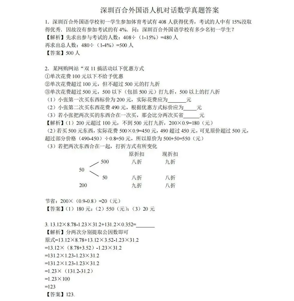深圳市外国语学校2023年初一新生分班考数学答案.pdf
