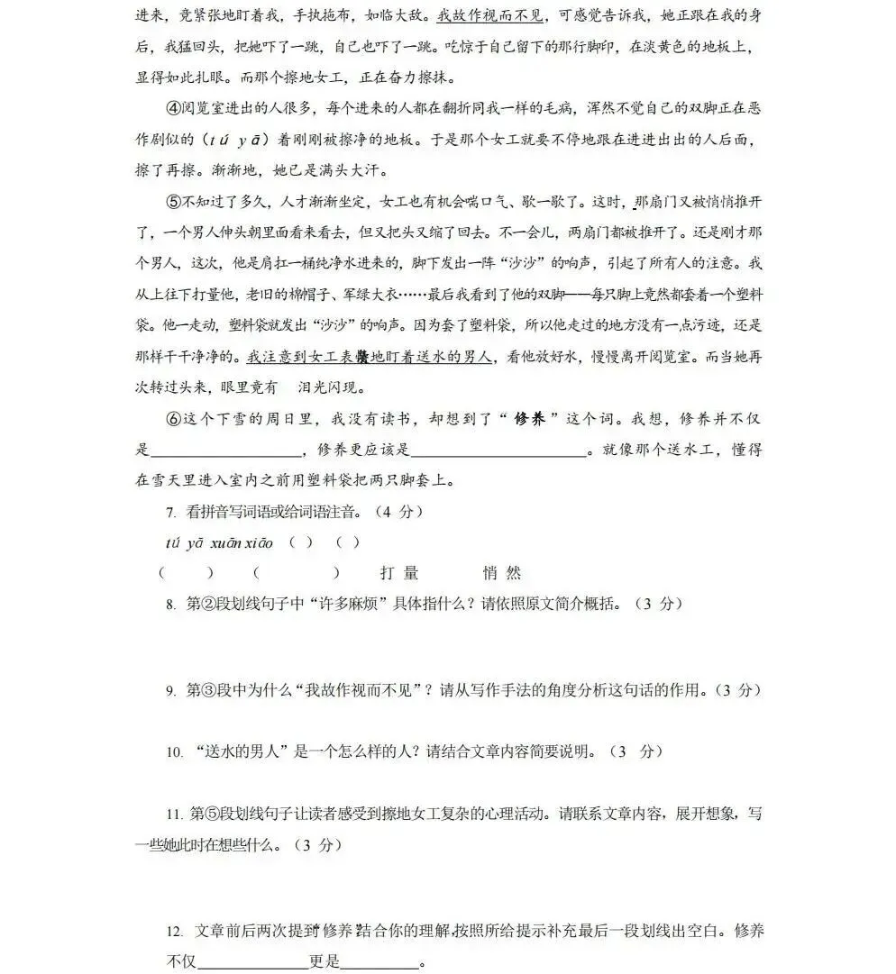 深圳小升初真题:宝安区某名校2023年新生入学语文真卷和答案