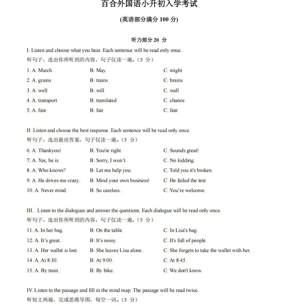 英语-深圳市百合外国语学校初一入学分班卷.pdf