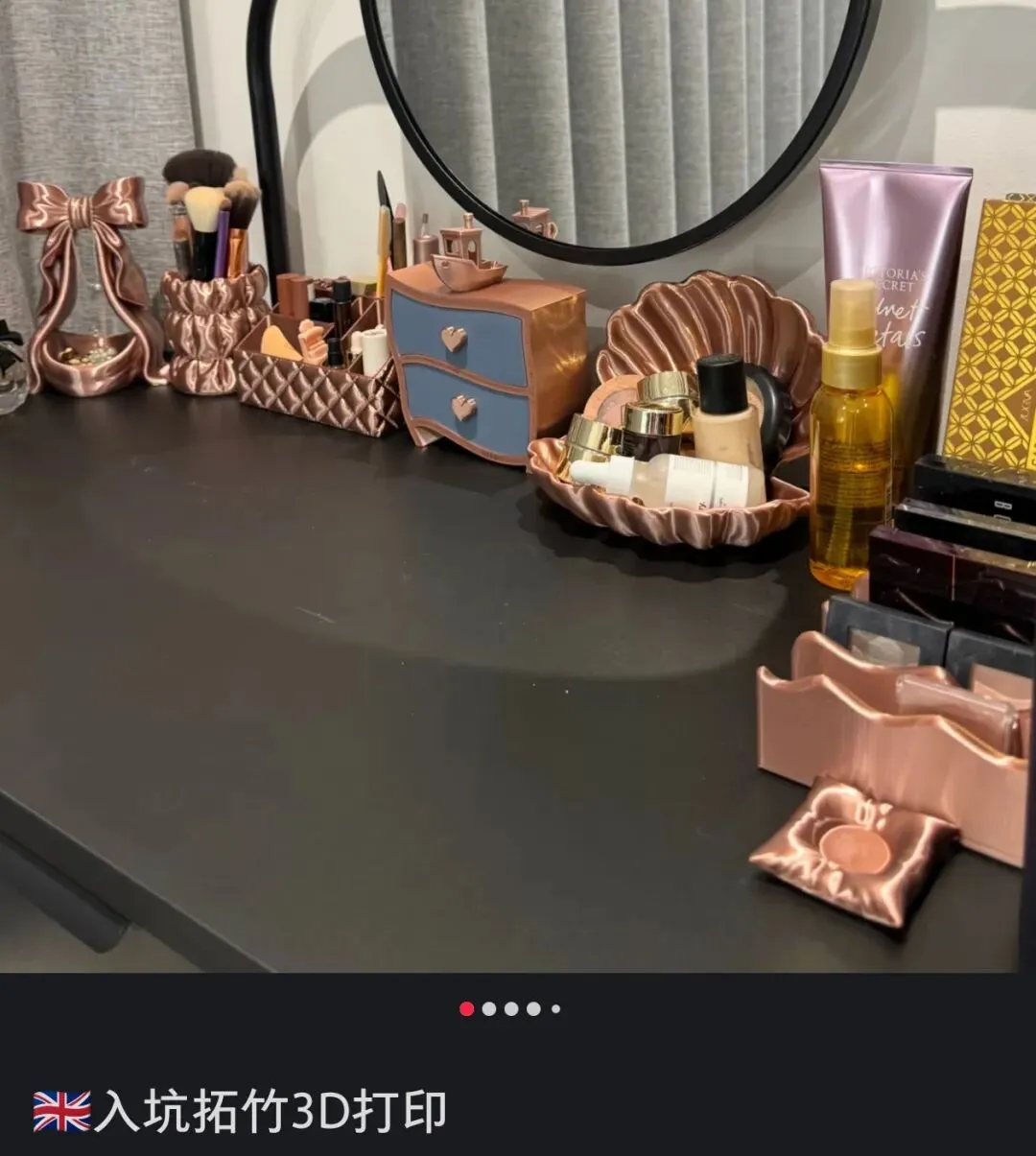 你以为3D打印只能打印玩具?太小看它了。现在的3D打印,承包生活里大部分的东西制作。有网友的化妆桌基本被3D打印包圆。