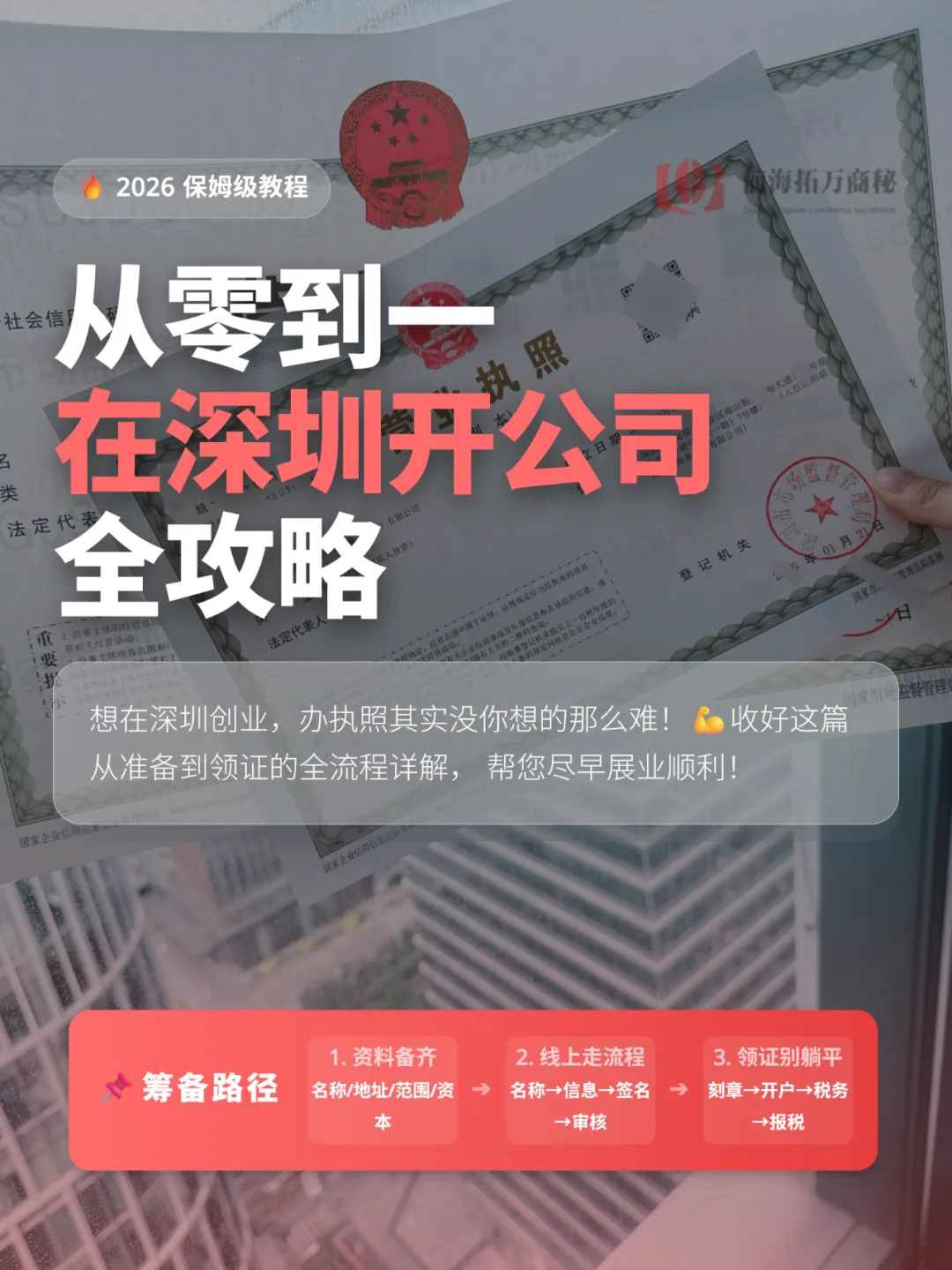 >从零到一在深圳开公司(2026保姆级教程):准备、流程、避坑,一篇搞定!