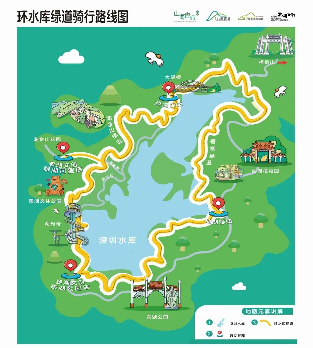 这条骑行道,串联了东湖公园、翠湖文体公园、淘金山绿道、梧桐绿道,融入罗湖“八园连通”的生态脉络,置身其中,可沉浸式感受“一半山水一半城”的独特魅力。