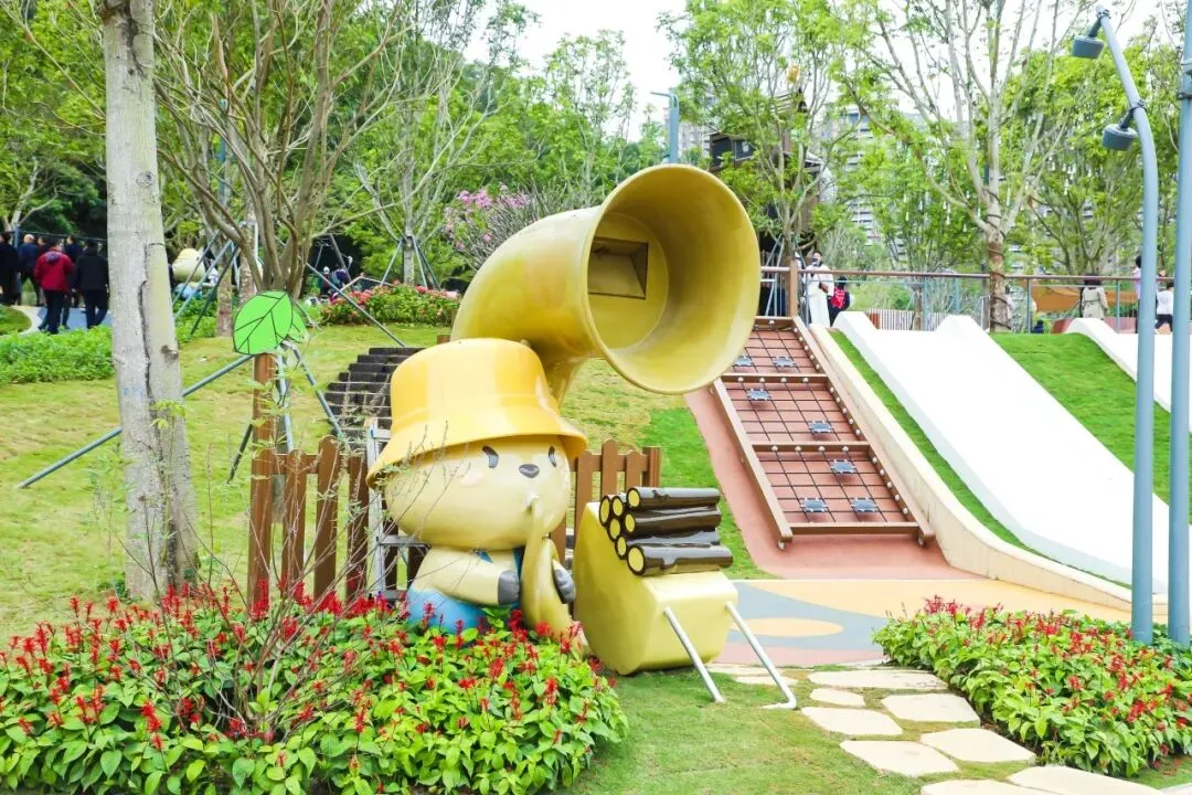 翠湖文体公园是深圳首个“零碳公园”,也是环深圳水库绿道上的重要节点。公园以“河狸”为IP形象,处处可见憨态可掬的河狸元素,充满童趣。