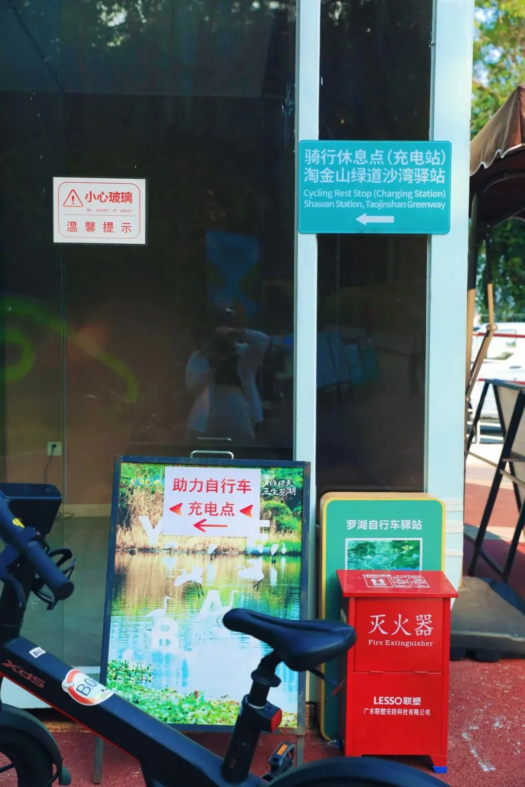 沙湾驿站是沿途重要的骑行休息点,设有休憩区域和助力自行车充电点,骑累了不妨在这里歇歇脚。