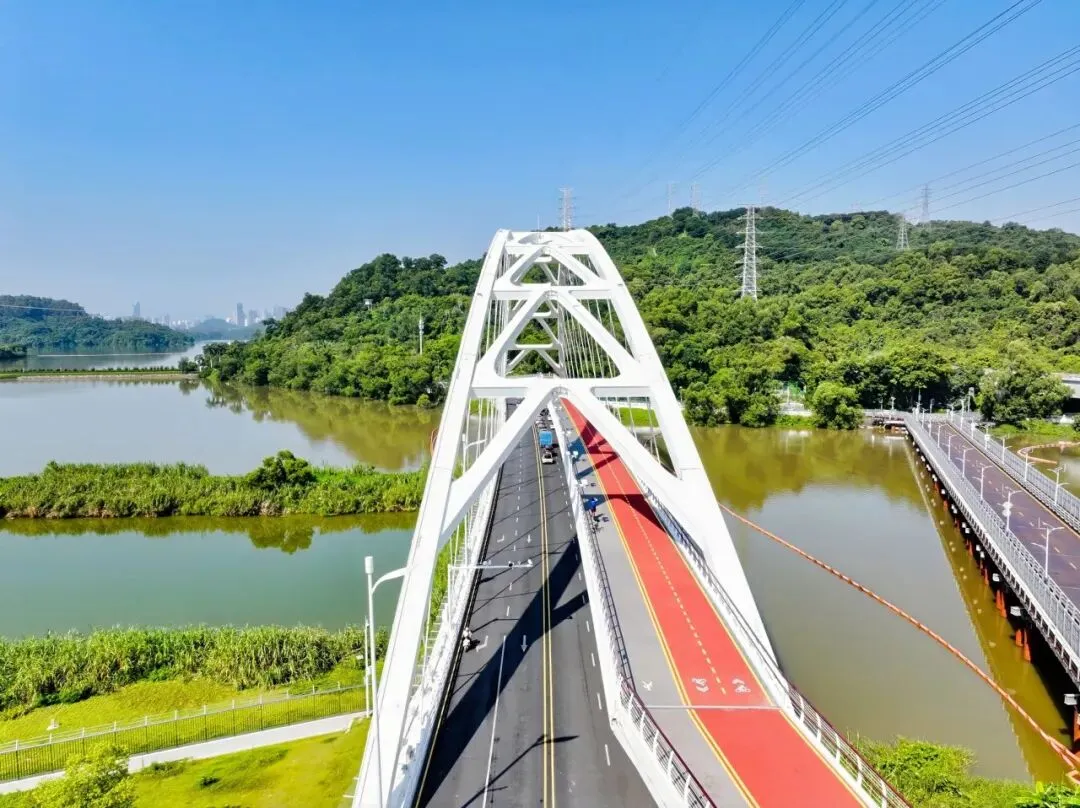 2025年底,环深圳水库绿道项目(二期)主线贯通,淘金山绿道与梧桐绿道无缝衔接,深圳水库南线绿道与骑行道顺利连通,八大公园“串珠成链”,一条“翡翠项链”在山湖之间蜿蜒舒展。