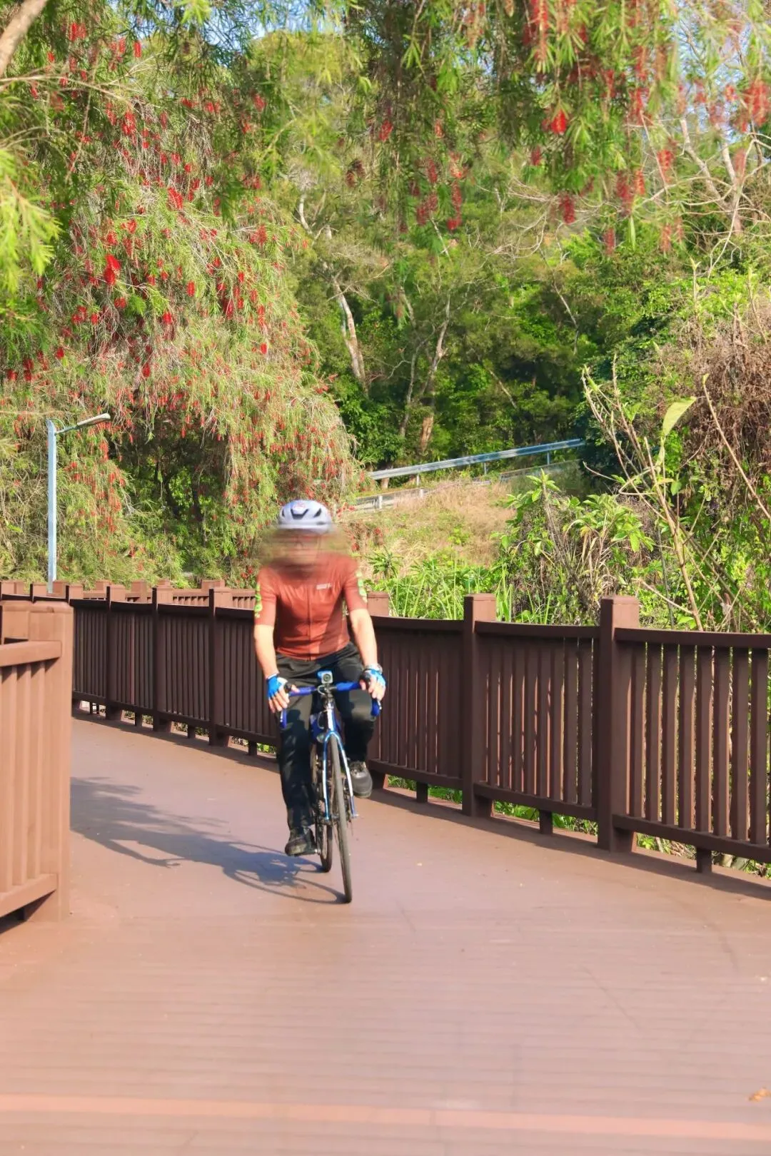 梧桐绿道是深圳经典骑行路线之一,前半段是木质栈道,骑行时,车轮下发出轻微的声响,别有一番趣味。