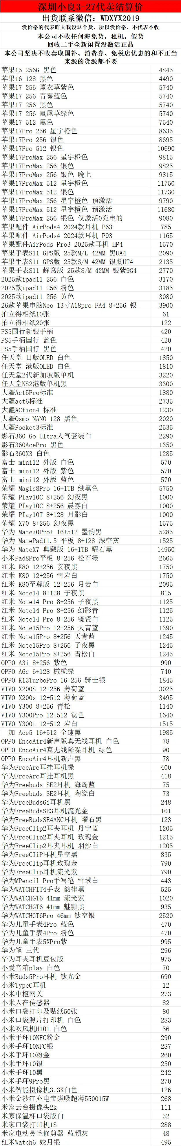 >深圳小良2026.3.27电子产品代卖结算价(美妆价格小程序查看)