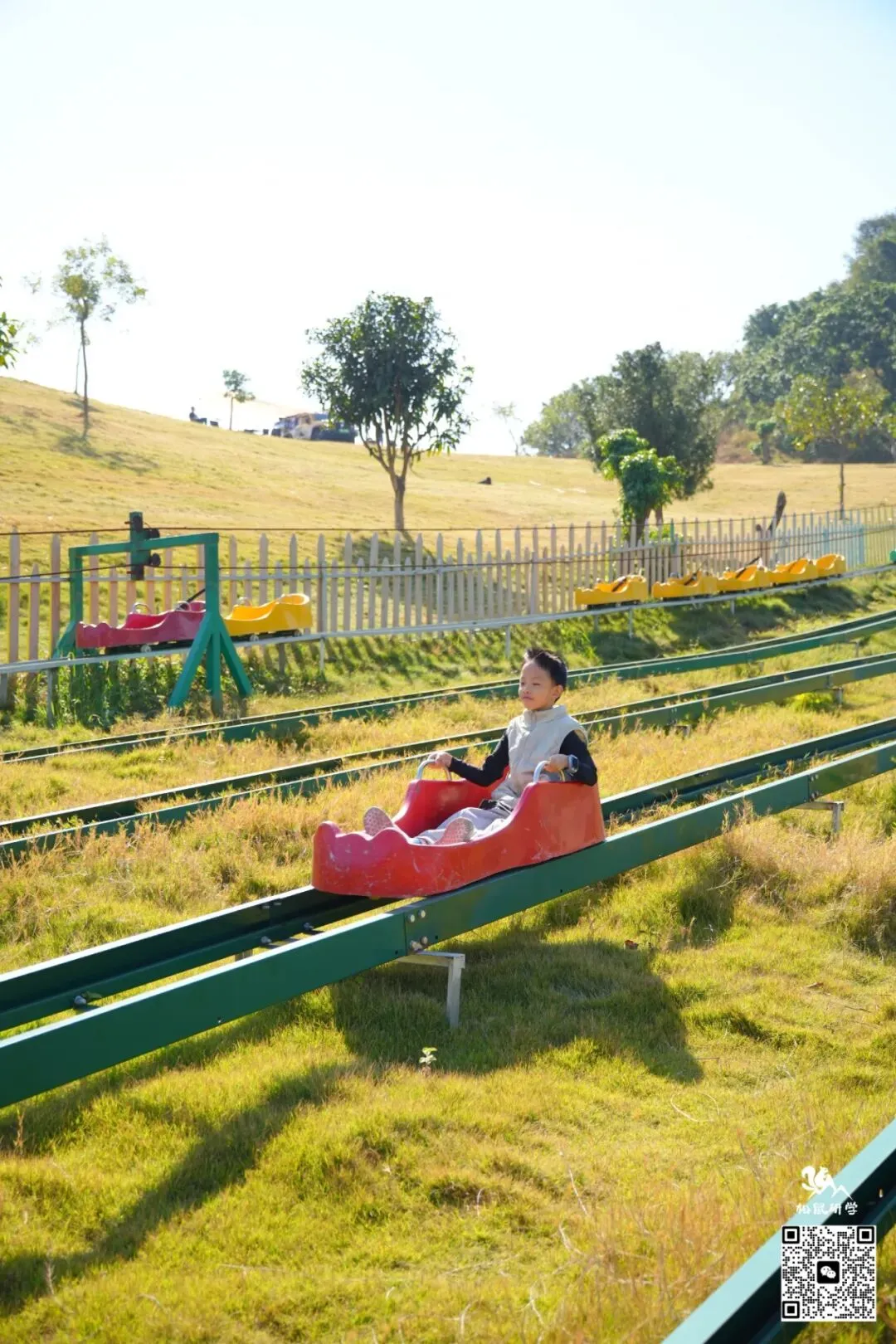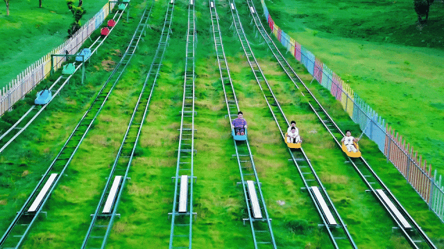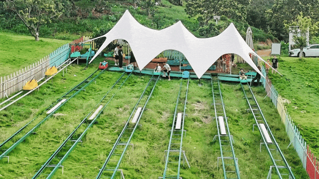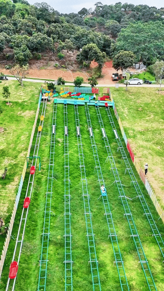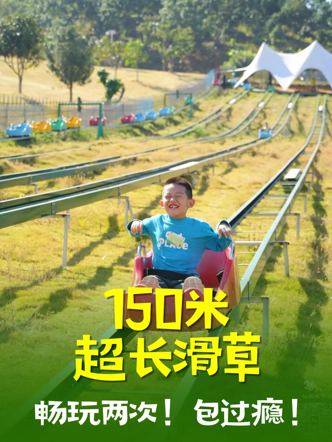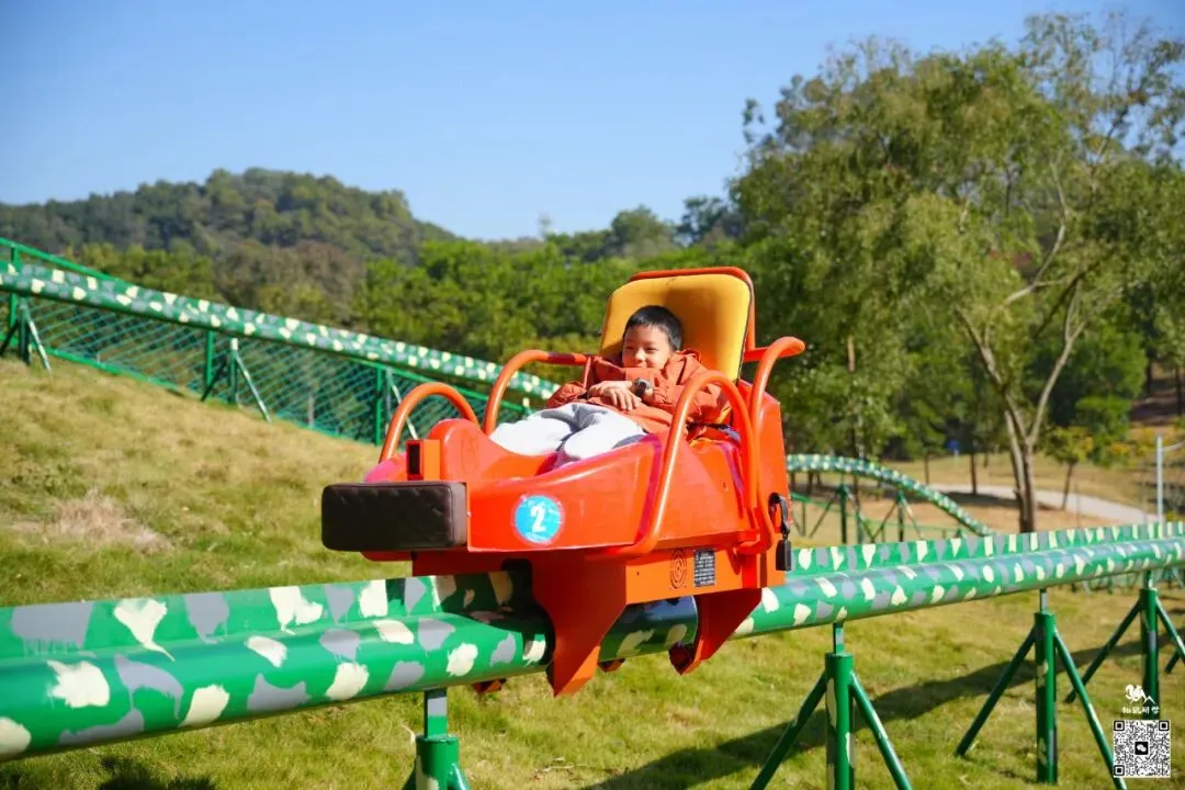 150米超长坡道,一冲而下,速度与刺激让心跳加速;体验风一般的畅快,还能享受亲子共玩、全家互动的快乐时光!(入秋后,山坡上的草会逐渐变黄,不似夏日葱绿,但滑草体验不受影响,景色更添秋意,介意者慎拍!)