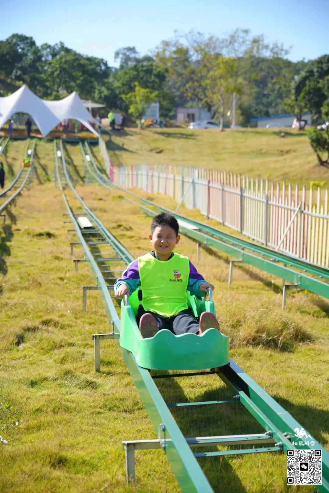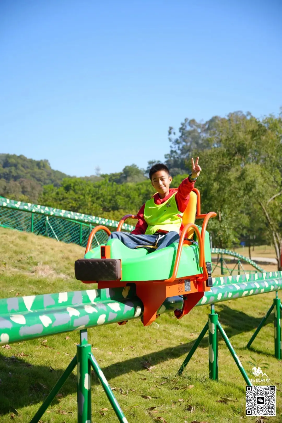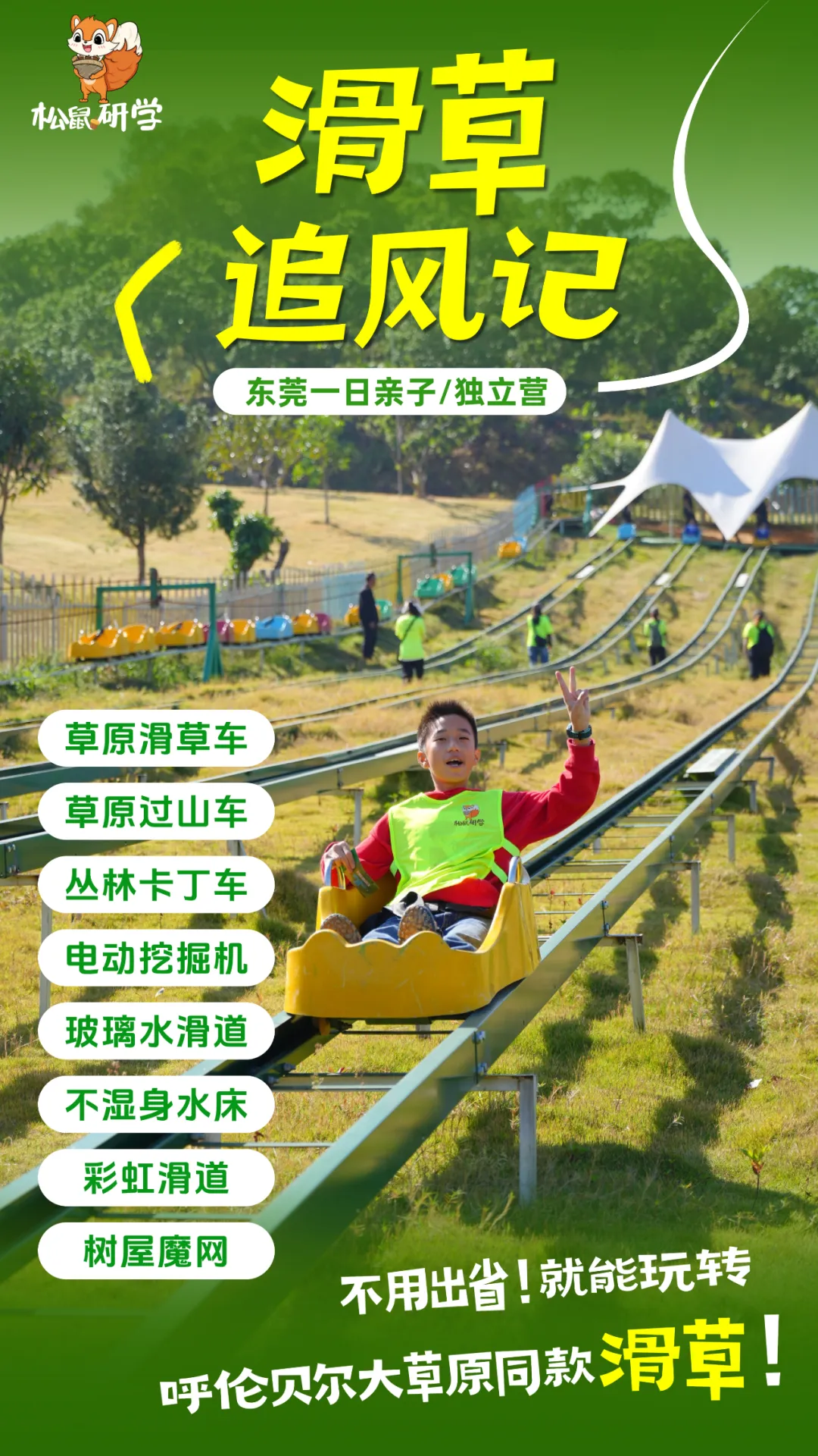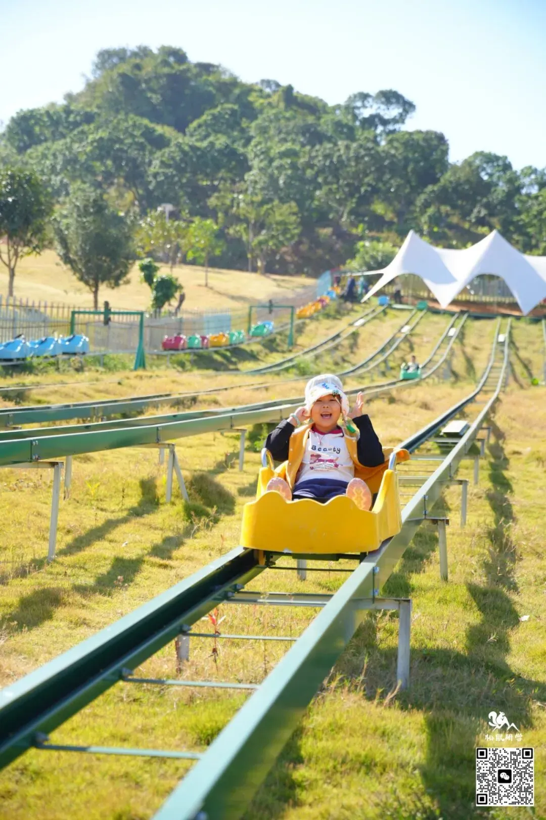 150米超长坡道,一冲而下,速度与刺激让心跳加速;体验风一般的畅快,还能享受亲子共玩、全家互动的快乐时光!(入秋后,山坡上的草会逐渐变黄,不似夏日葱绿,但滑草体验不受影响,景色更添秋意,介意者慎拍!)