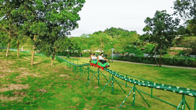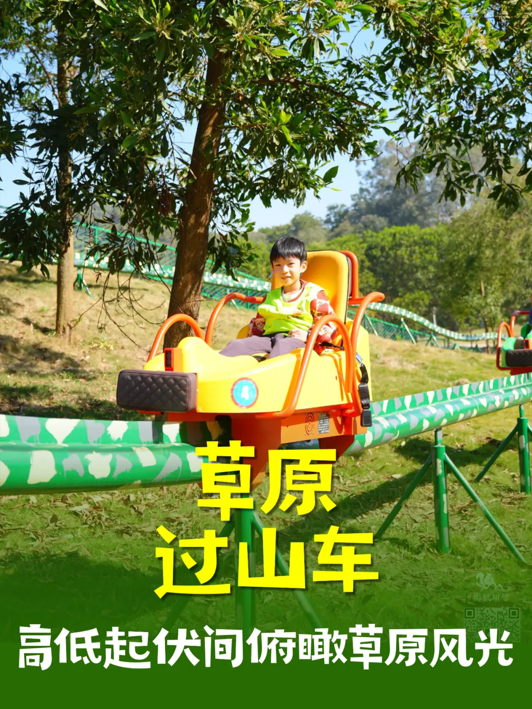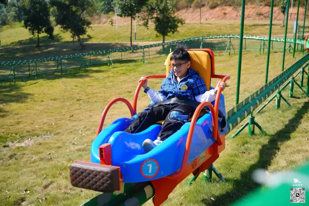 孩子们在车上欢呼,感受微微的速度与轻盈的飘感,每一段俯冲,都像是在草原上飞翔,体验童年的快乐!