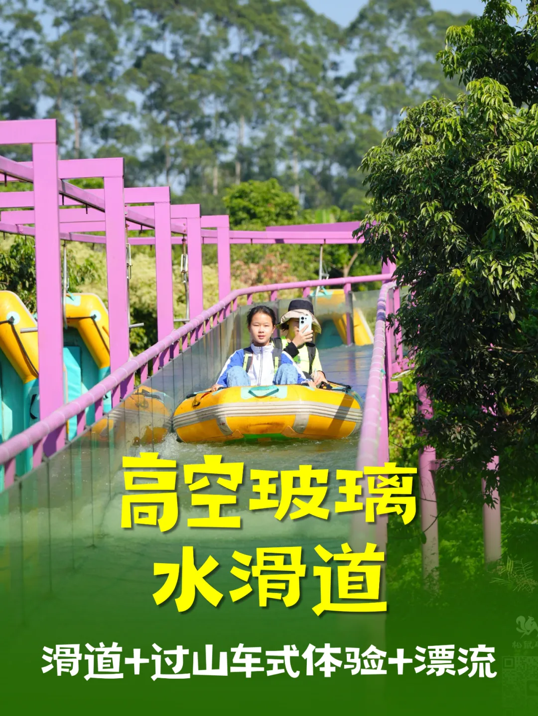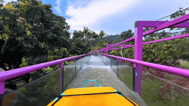 玻璃滑道+过山车式体验+漂流,坐在皮划艇上顺流而下,不用担心湿身,放心玩!