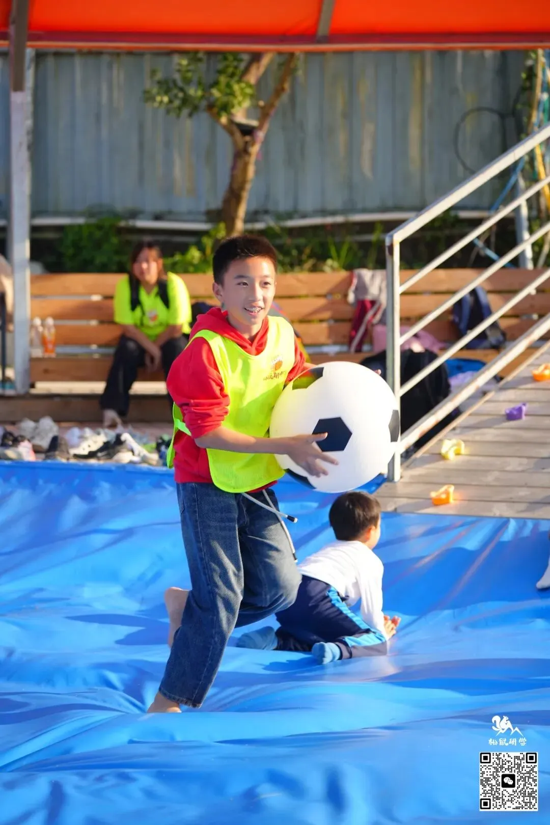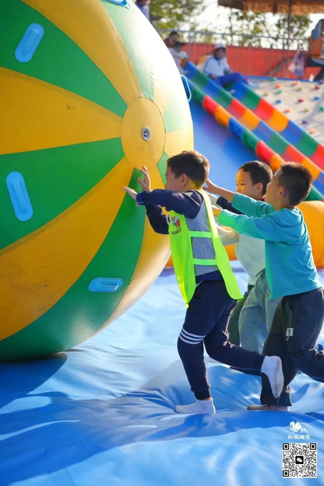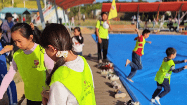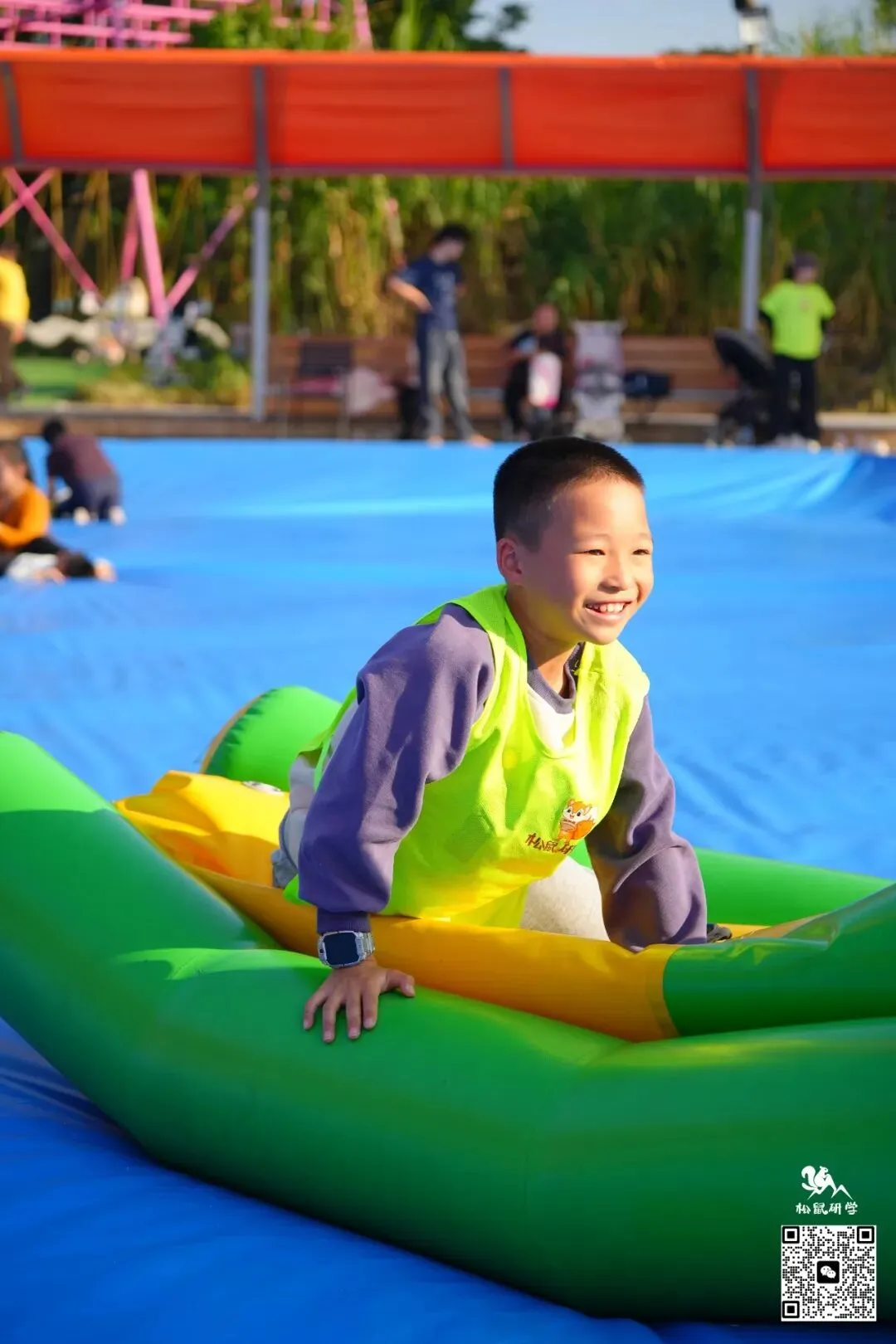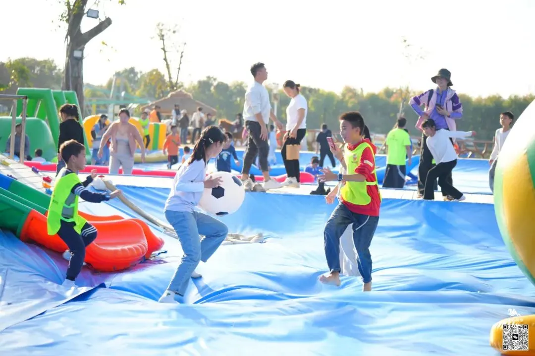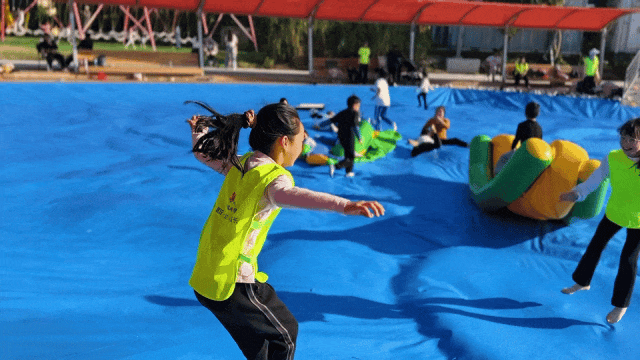 深一脚浅一脚,摇摇晃晃,孩子们之间互相玩闹,笑得畅快淋漓;抛开一切烦恼,全身心放松~即使没有水也依旧好玩到爆!