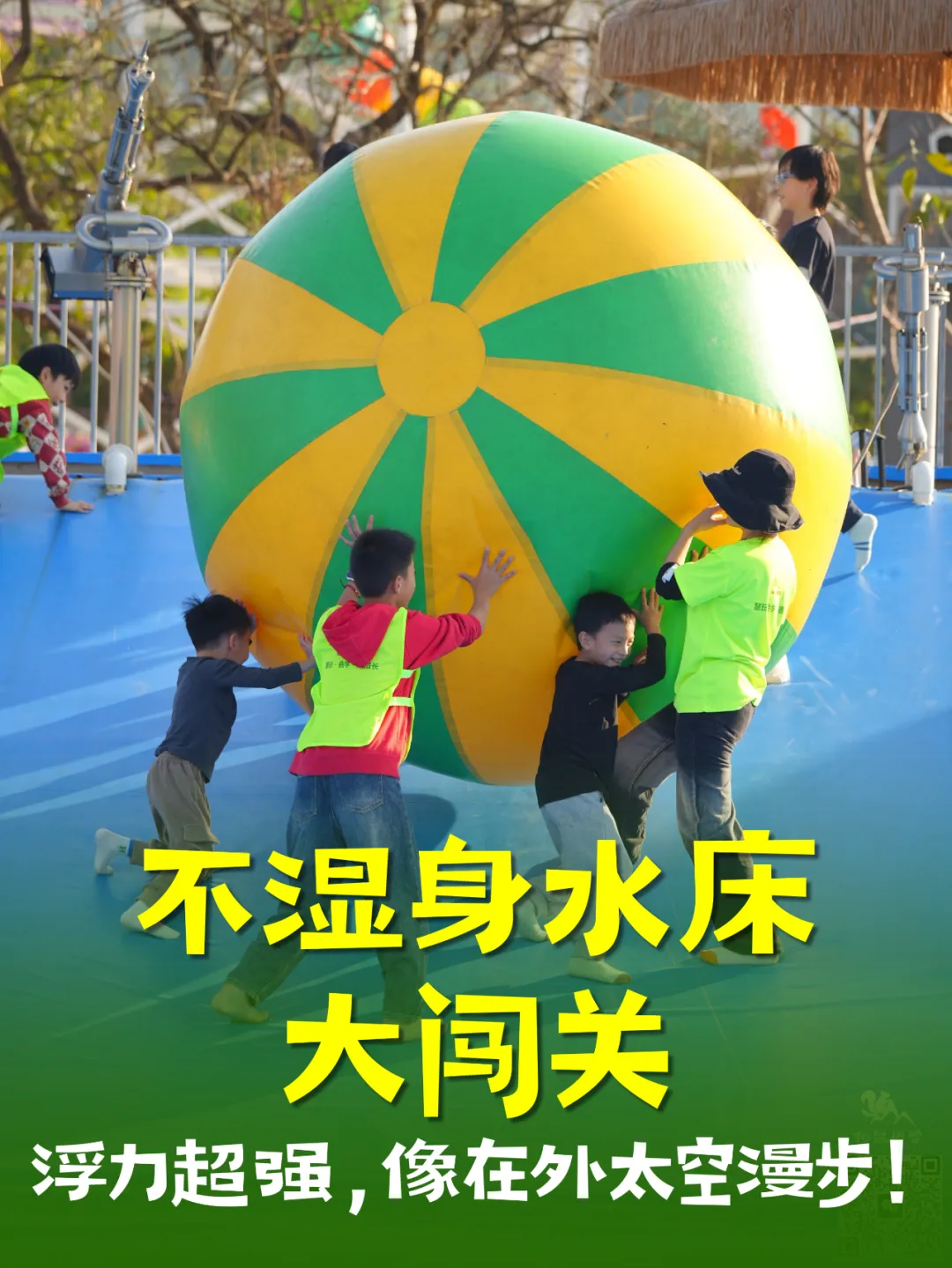 水床大作战,踩上去瞬间被Q弹感惊到!像在低重力星球蹦跶,新奇感拉满!(天气转凉,温度较低水床不会蓄水,不用担心湿身!)