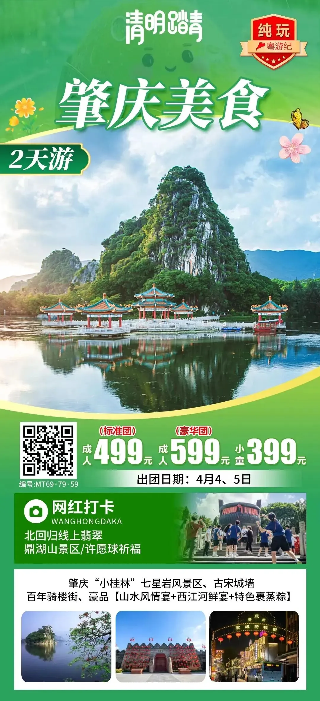 星湖山水!肇庆“小桂林”七星岩风景区、北回归线上翡翠-鼎湖山景区/许愿球祈福、古宋城墙、百年骑楼街、豪品【山水风情宴+西江河鲜宴+特色裹蒸粽】美食2天出团日期:4月4、5日