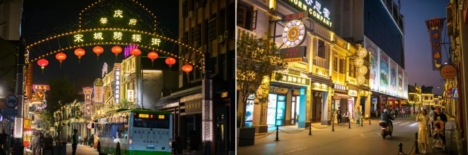【宋城骑楼街】是以复古、非遗为核心元素,聚焦博物馆、非遗传承、旅游、手信、美食、艺术等内容打造集历史、文化、休闲、娱乐于一体的肇庆旅游“新名片”。餐饮、杂货铺、邮局、音乐、青少年画展等各门类齐全,市民游客在美食、文化体验中,尽情感受肇庆文旅魅力。充满民国风情特色的招牌高高悬挂,霓虹灯等装饰古色古香,历史气息与现代潮流交融,令人眼前一亮。