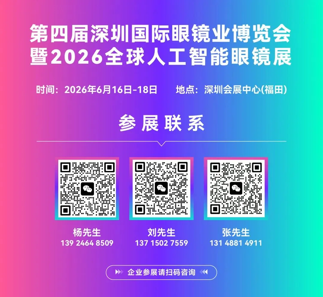 第四届深圳国际眼镜业博览会暨2026全球人工智能眼镜展将于2026年6月16-18日在深圳会展中心(福田)7号馆、9号馆举行。展会以“智镜无界·AI共生”为主题,聚焦眼镜产业发展趋势,积极探索人工智能与眼镜行业的深度融合。