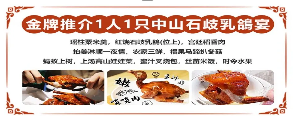 12:00【中餐】金牌推介1人1只中山石歧乳鴿宴