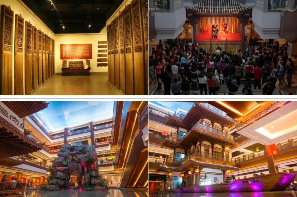 红博城打造独特的唐、宋、明、清四大中厅,骑楼街、隆都里两大主题街区,给游客以穿越时空的真实感。五层打造大师园艺术酒店,有别于传统酒店行业发展模式,以国家AAAA 级景区为依托,红木文化旅游和生态旅游。