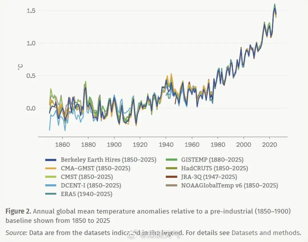 根据国家气候中心数据,2025年全球平均气温较工业化前水平高出约1.43℃(如下图),是有观测记录以来最暖年份之一,升温基线不断抬升,入夏自然越来越早。