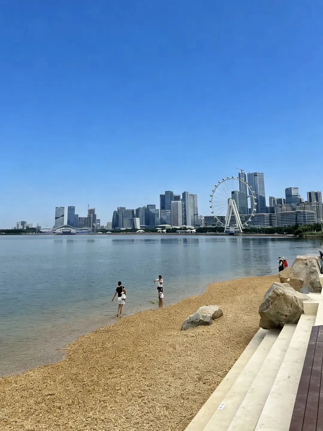这个沙滩是2025年8月26日开放的,市中心的人造沙滩,沙滩长约470米,可以容纳很多人一起看海看日落,沙滩旁边就是大海。270°无敌海景,沙滩上还有躺椅和遮荫伞,这些全部是免费的,位置有限要早点去。沙滩边能以摩天轮为背景这里拍照特别好看,这里也是看日落的绝佳位置,不用跑大梅沙也能拍到沙滩海浪日落同框。