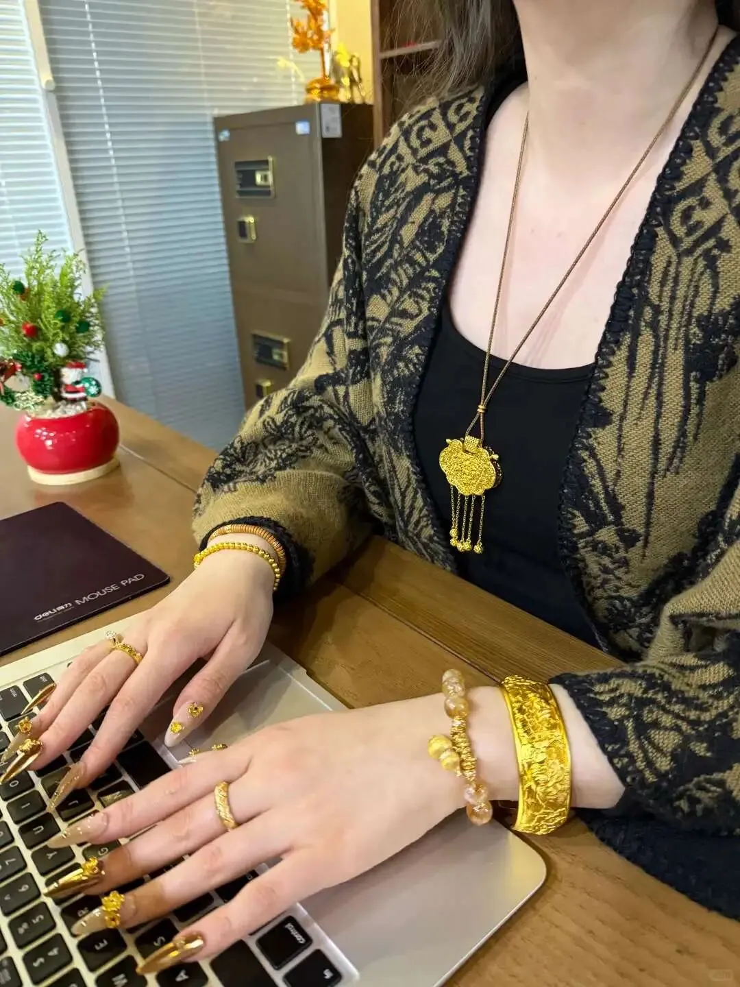 我那条日常佩戴的足金项链,是为通勤买的。理由很简单,皮肤白一点的日子更显气色,懒得搭配也不出错。克重选了中等,脖颈不被压,却有存在感。夏天素T直接戴,扣头微微偏到后颈,镜子里线条更顺;冬天叠在细项链外层,朋友说亮但不抢戏。我妈第一次见,摸了摸说“扎实”,让我别在厨房戴,油烟会糊颜色💫