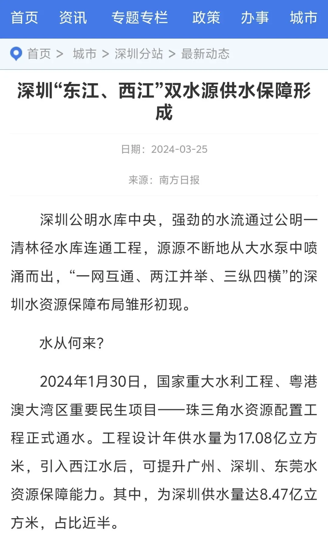 1. 有供水底气了:2024年,深圳实现双水源供水1️⃣以前深圳80%依赖东江,本地水库不敢开放。