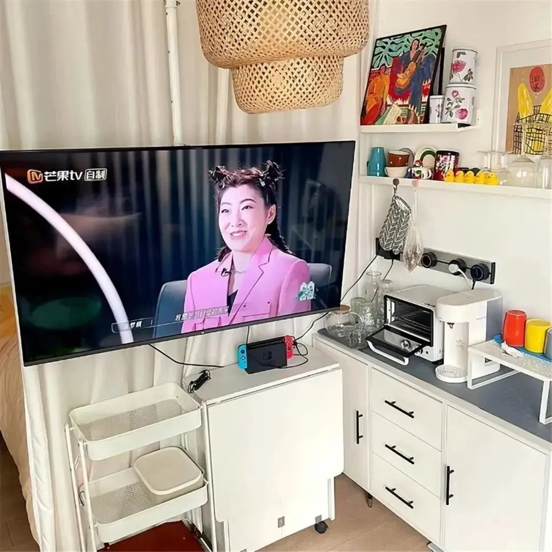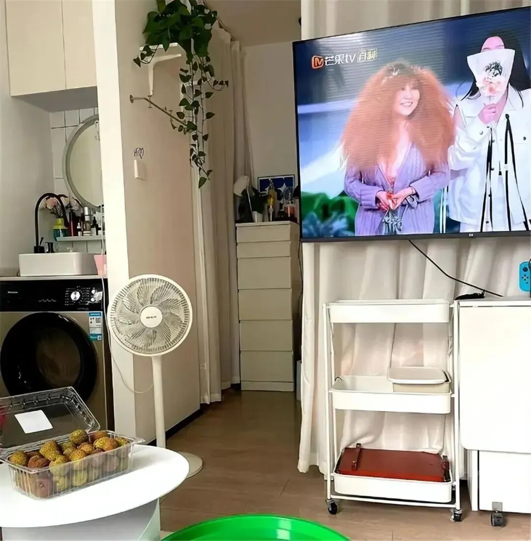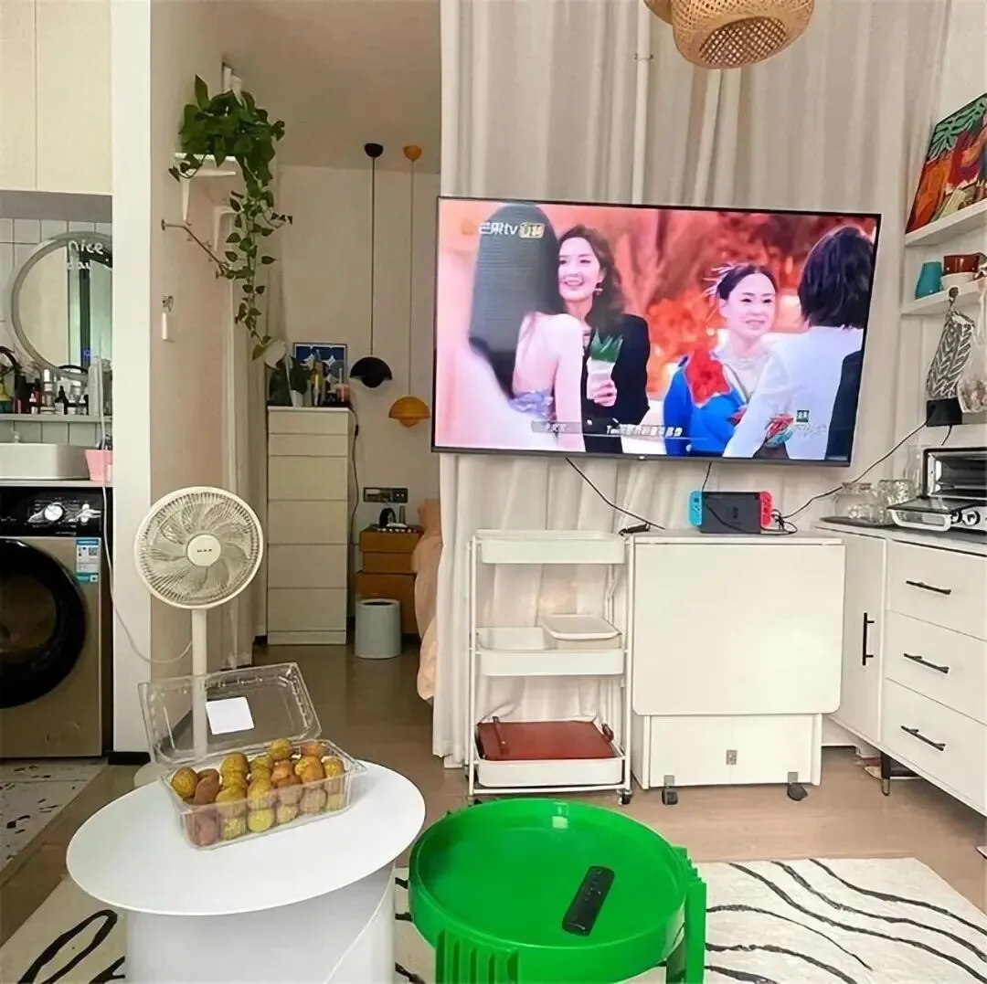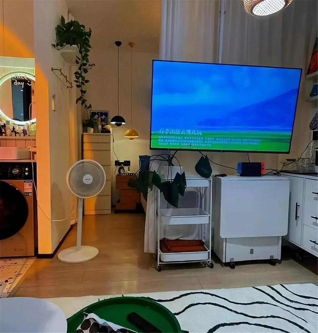 推车放在电视边,我懂,这是把「杂物尴尬」集中收拾。