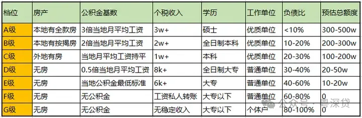 征信干净+公积金基数高(3w+)+学历高+有资产+优质单位+负债率低