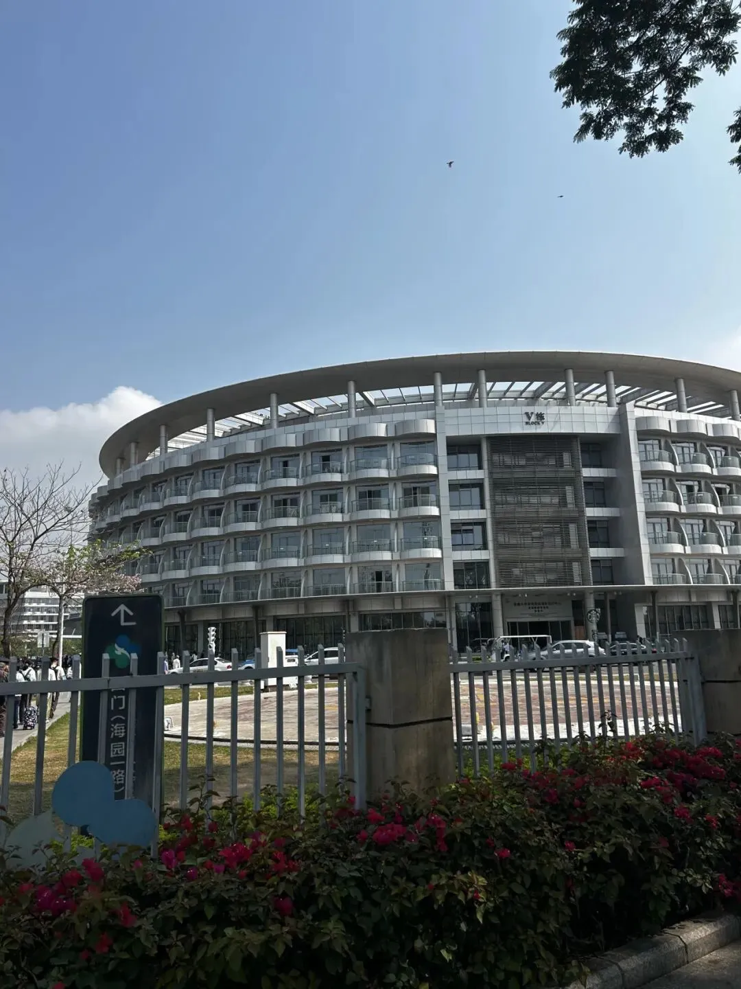 国际部所在的这栋楼叫“V栋”,从深圳湾地铁口出来就能看到。