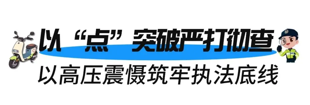 行动坚持以重点违规门店、事故案件为突破口,展开深挖彻查,形成高压态势。“三法”衔接从严执法,对非法改装、销售超标车违法行为一律从严处罚。通过个案深挖、精准打击,对全市电动车经营行业严查严管,倒逼经营主体严守法律底线、规范经营行为。